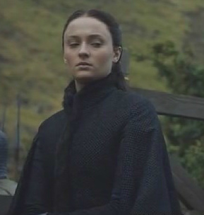 珊莎本季換上一身黑的裝扮不知是否象徵她城府之精進? 很安靜的坐在一旁聽小指頭談論事情,也許只聽不說才是目前最明智的做法。